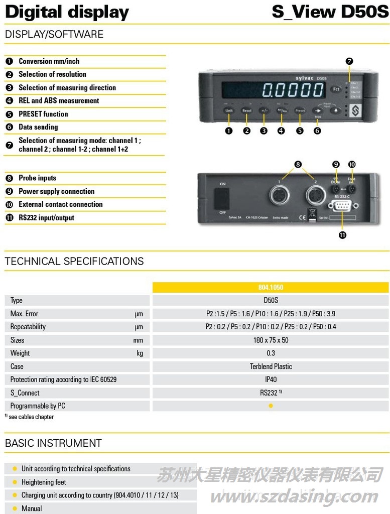 產(chǎn)品介紹SYLVAC數(shù)據(jù)顯示器D50S,瑞士SYLVAC顯示器D50S/804.1050 SYLVAC D50S 顯示器的詳細(xì)介紹,包括瑞士SYLVAC顯示器D50S/804.1050 SYLVAC D50S 顯示器的價(jià)格 瑞士Sylvac電子顯示器D50S規(guī)格參數(shù)表