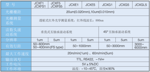 | JCXFS5 | 5μm | 50~400mm | 60m/min | ±5μm | ±3μm |